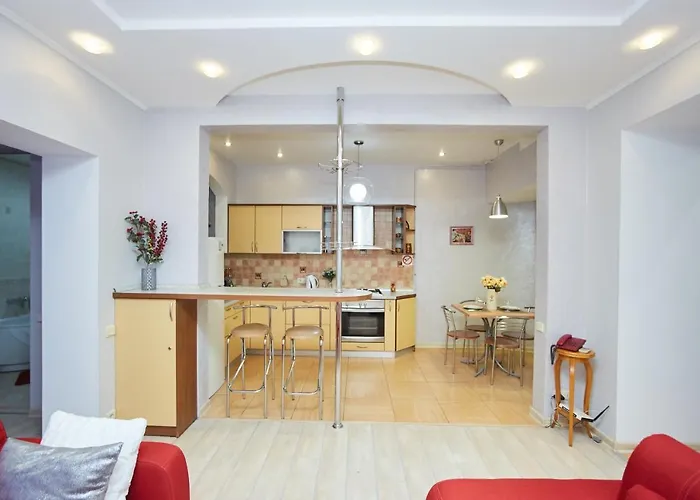 Os hóspedes poderão encontrar Temple of St. Andrew, Ukrainian Greek Catholic Church a cerca de 1.6 km e Jardim da Cidade dentro de 0.1 km da propriedade. O centro de Odessa está ao redor de 1 km de distância. Kompot, Eleven Dogs e Babulya Restaurant podem ser encontrados dentro de 50 metros da propriedade.Este apartamento está situado fora de Rua Deribasovskaya.